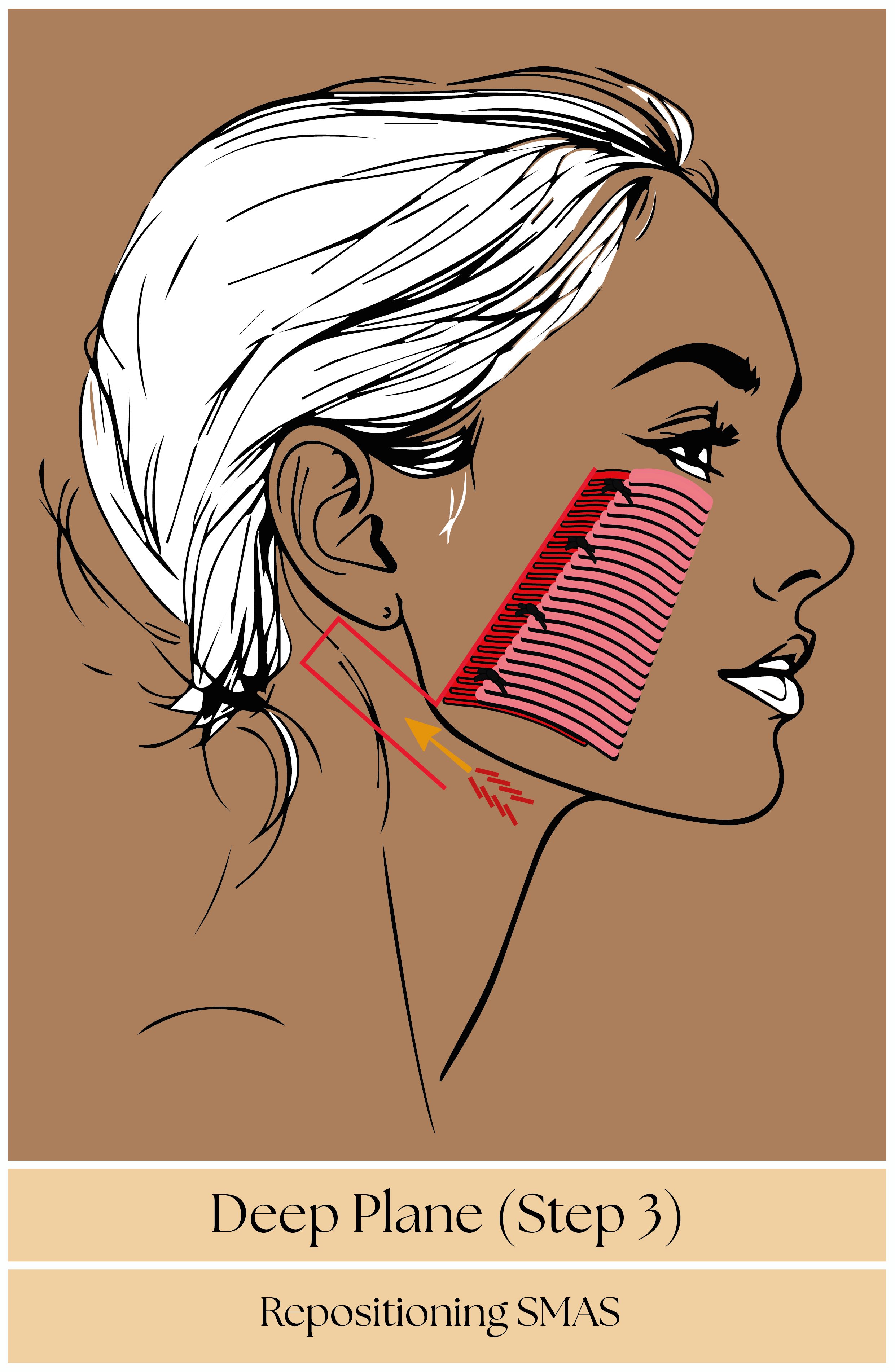 Our innovative approach, perfected over decades of surgical expertise, focuses on precisely lifting and repositioning both the skin and underlying SMAS tissue, specifically addressing the inferior cheek area, central cheek descent, marionette lines, and jawline definition. By targeting the central SMAS layer through precise tissue manipulation, we achieve natural-looking results that refresh your appearance while preserving your unique facial characteristics. Unlike traditional facelifts that primarily target the skin, our technique delivers comprehensive rejuvenation by directly addressing the SMAS layer, ensuring longer-lasting and more natural results. The procedure expertly corrects midface sagging, nasolabial folds, and early jowl formation, creating balanced rejuvenation that appears completely natural. With our refined recovery protocol, you can return to your professional and social life within 14 days, with complete healing achieved in approximately 21 days – ideal for those maintaining active lifestyles. The Central SMAS Lift delivers targeted, long-lasting rejuvenation that evolves naturally with you, ensuring you maintain your refreshed, harmonious appearance through the years ahead.